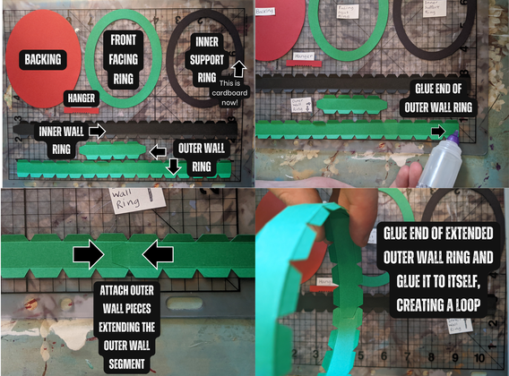 Attach embellishments to the tree, as well as adding any holiday papers as a backing before gluing the tree to the backing of the frame